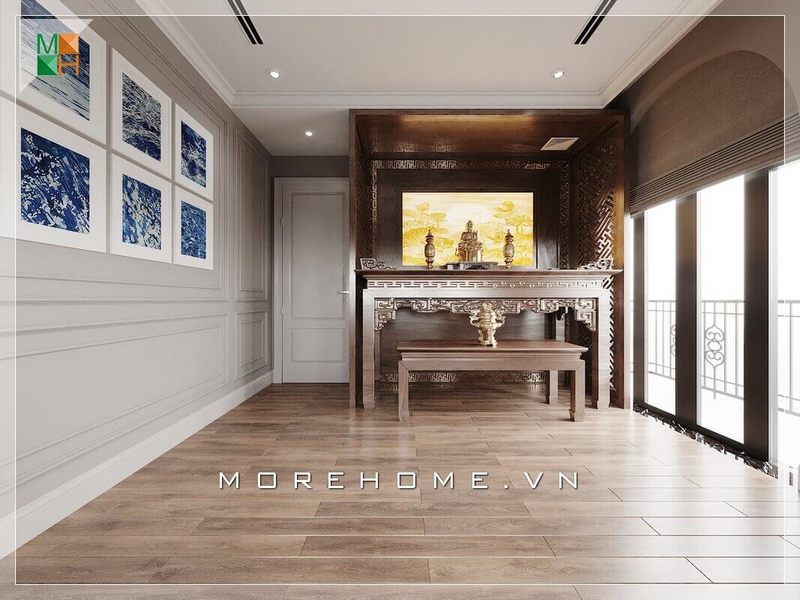 Mẫu thiết kế phòng thờ chung cư, biệt thự, nhà phố trang nghiêm, không quá đơn điệu.