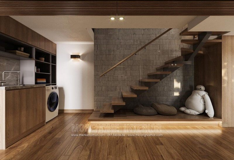 Sàn gỗ làm nền nhà tạo nên sự ấm áp khả năng chống ẩm nhiệt độ thời tiết bên ngoài.
