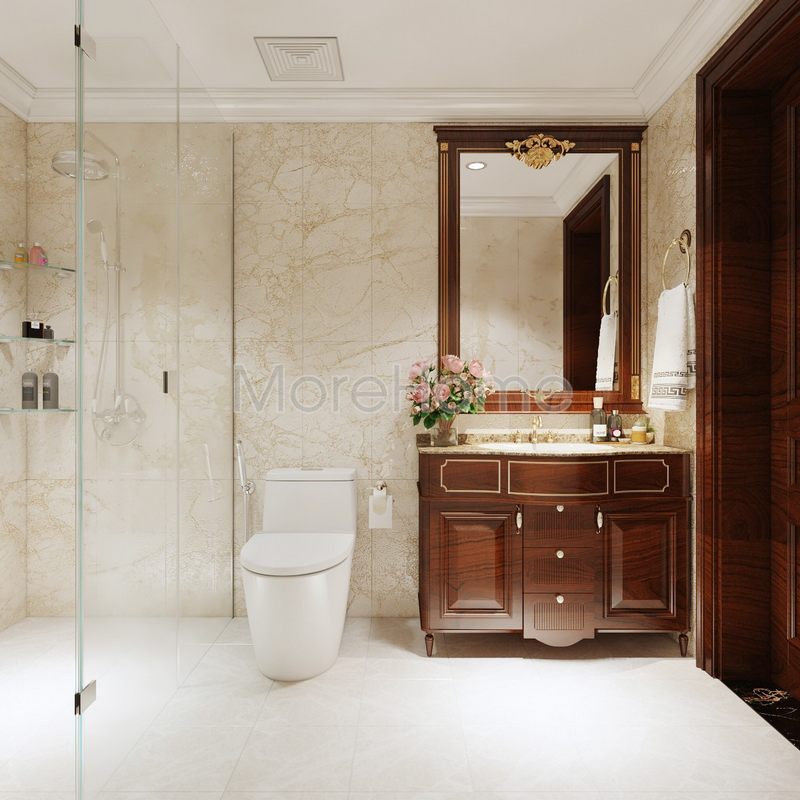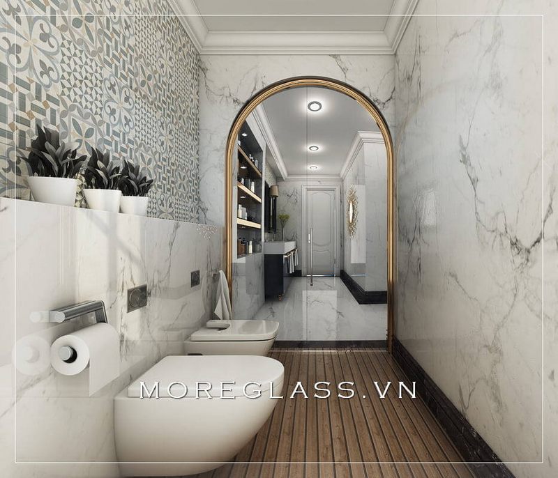 Phòng tắm trang trí nội thất với phong cách tân cổ điển thẩm mỹ cao và sử dụng tiện nghi.