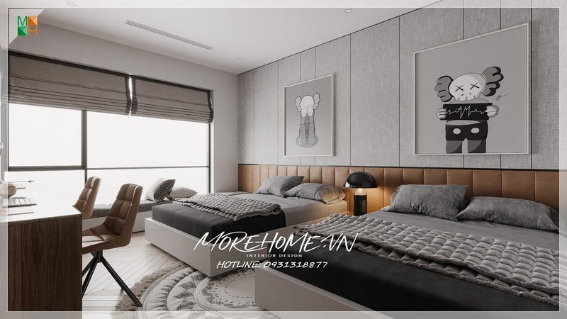 Giường đôi có màu sắc và kích cỡ giống nhau là rất phù hợp cho cặp bé trai.