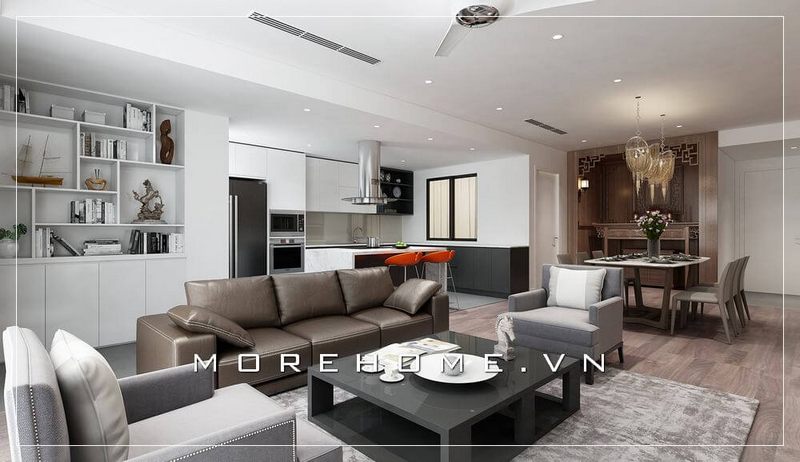 Thiết kế phòng khách cho căn hộ hiện đại được làm đơn giản nhưng sang trọng và độc đáo, tạo nên không gian ấm cúng cho mọi gia đình.