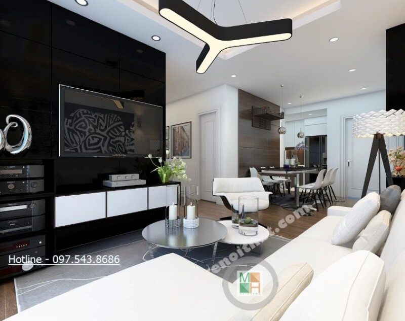 Nội thất phòng khách hiện đại và sang trọng được áp dụng trong các căn hộ chung cư.